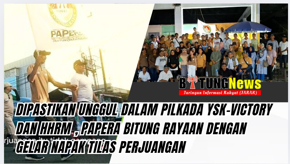 Dia menambahkan, sebagai bagian dari Organisasi pedagang pendukung pak prabowo, hasil akhir kompetisi Pilkada ini sudah membuktikan bahwa Pedagang PAPERA menyatu dan berkontribusi menyumbangkan puluhan ribu suara, untuk kemenangan Yulius Viktor dan Hengky Randito, dikota Bitung.