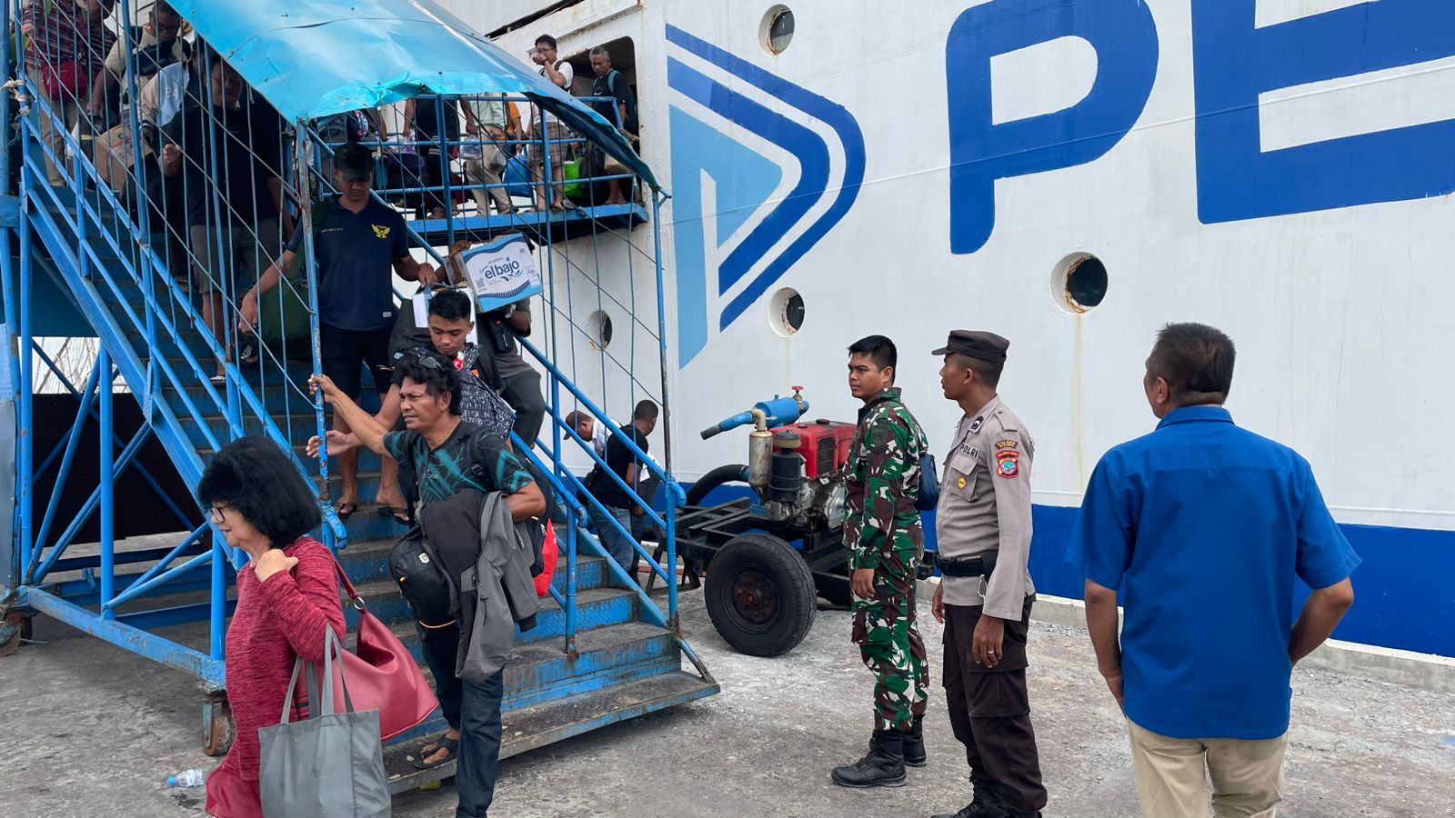 bitungnews.id || BITUNG – Humas Polres Bitung – Semakin dekatnya perayaan Natal dan Tahun baru 2025, volume kedatangan penumpan kapal yang turun di Pelabuhan Samudra Bitung mulai meningkat, terpantau pada hari Rabu tanggal 18/12/2024 pukul 13.00 wita, Kapal KM Tilongkabila menurunkan penumpangnya di Pelabuhan samudera Bitung.