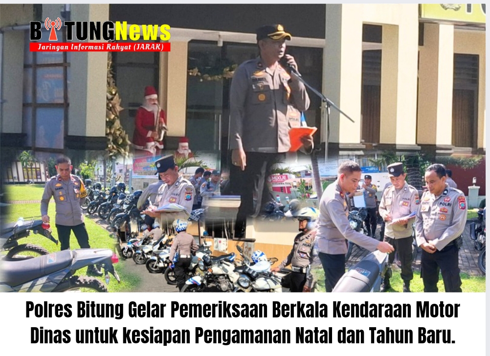 bitungnews.id || BITUNG – Humas Polres Bitung – Dalam rangka pengamanan Natal dan Tahun Baru, Polres Bitung melakukan Apel pengecekan kesiapan kendaraan bermotor Roda Dua yang nantinya akan digunakan untuk kegiatan Patroli, Apel dilaksanakan di halaman Mapolres Bitung, Kamis (19/12/2024).