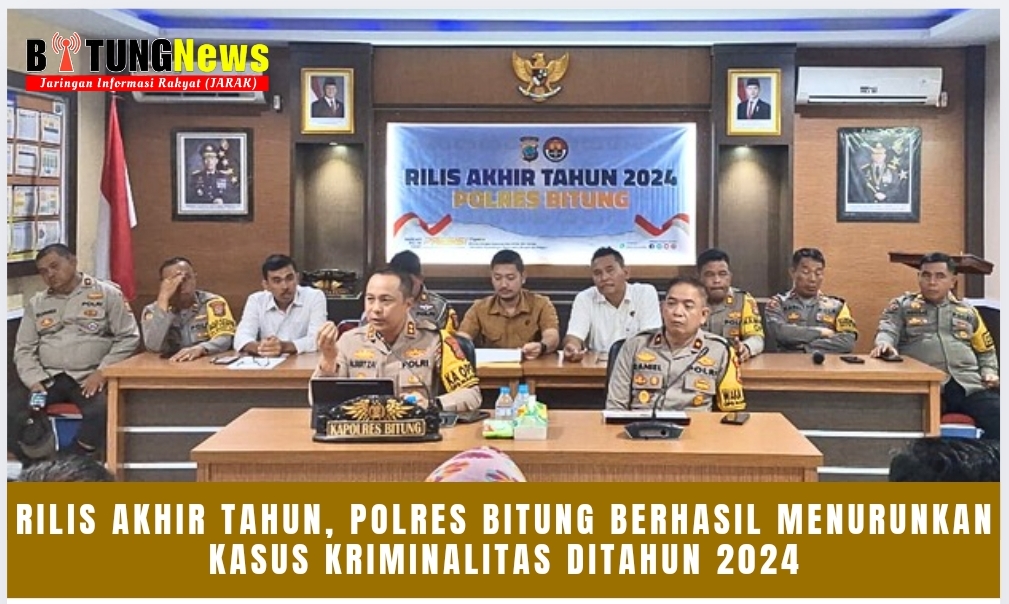 “Penanganan kasus oleh Sat Reskrim Polres Bitung dan Unit Reskrim Polsek jajaran selama tahun 2023 sebanyak 1574 kasus dengan penyelesaian kasus sebanyak 905 kasus atau 57%. Sedangkan tahun 2024 penanganan kasus sebanyak 1401 kasus dengan penyelesaian sebanyak 702 kasus atau 50 %. Terjadi penurunan jumlah kasus di tahun 2024 dibandingkan tahun 2023 sebanyak 173 kasus atau turun 11 %,” ujar Kapolres Bitung AKBP ALBERT ZAI.,SIK.,MH