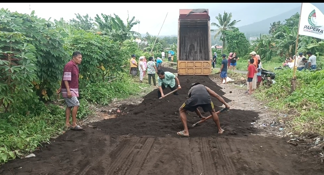 “Hari ini terwujud di lapangan selama 2 hari atas inisiasi dari masyarakat yang juga bagian dari anggota PAPERA untuk menunjukkan kepedulian terhadap akses jalan menuju ke kawasan pemukiman masyarakat,” ucap Kaunang