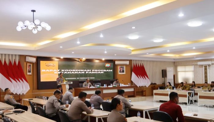 bitungnews.id || Manado – Polda Sulawesi Utara menggelar Rapat Koordinasi Program Ketahanan Pangan bersama instansi terkait, di aula Tribrata Polda Sulut, Selasa (18/2/2025).