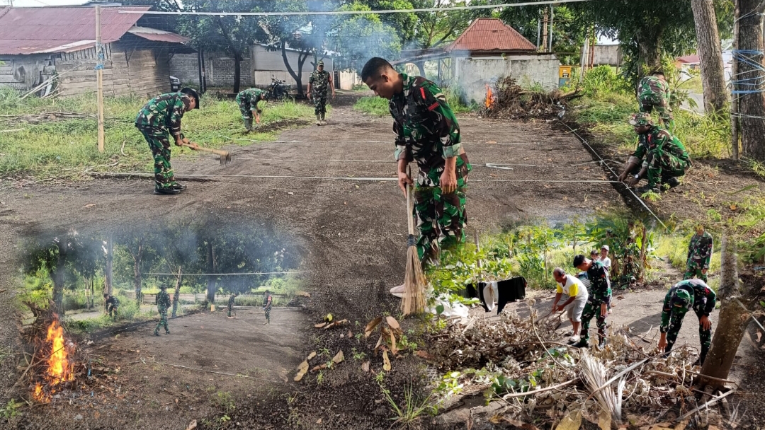 bitungnews.id || Bitung – Satgas TMMD Ke-123 Kodim 1310/Bitung bersama warga melaksanakan pembersihan dan pembenahan lapangan bola Volly di wilayah Kelurahan Girian Permai. Senin, (24/2/2025).