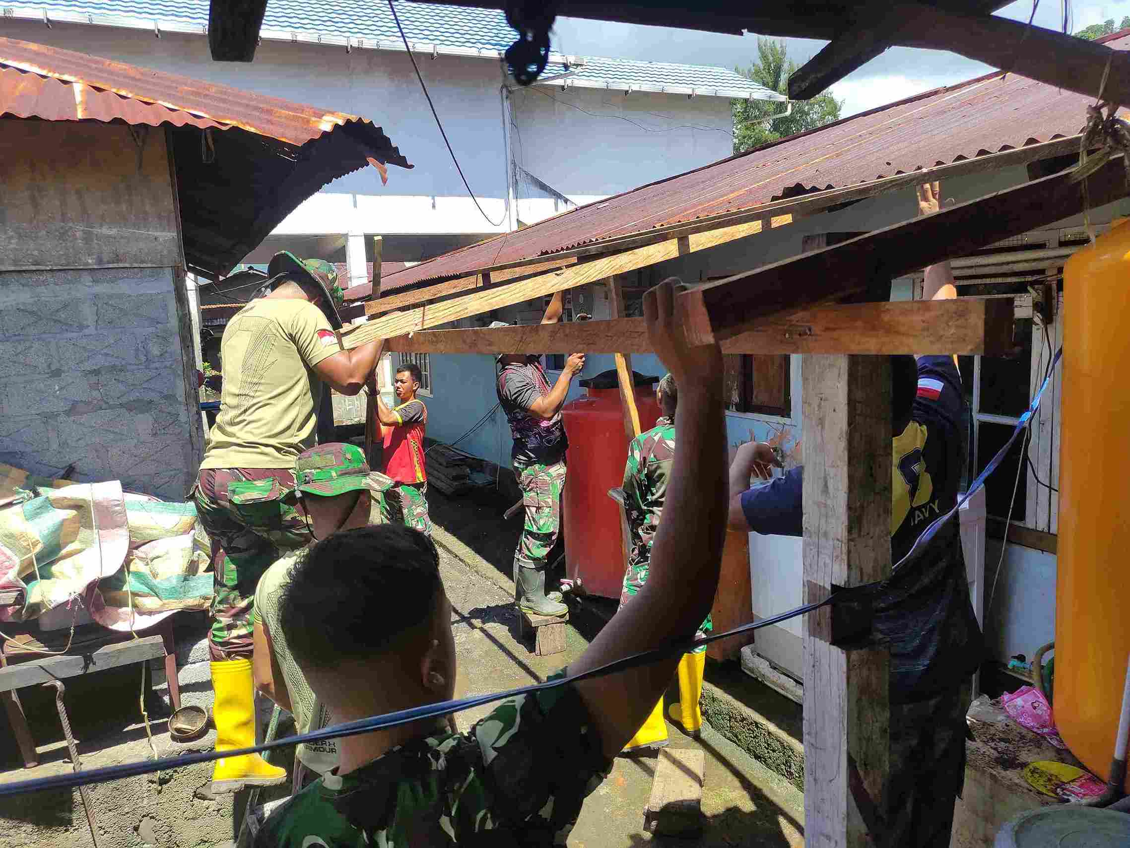 Dan SSK TMMD, Lettu Czi Hendri Satria, S.Tr.Han, kepada wartawan mengatakan, saat ini personil sedang membantu memperbaiki atap rumah milik ibu Delce Sagilateng di lingkungan 2 RT 007, RW 002, Kelurahan Tandurusa.