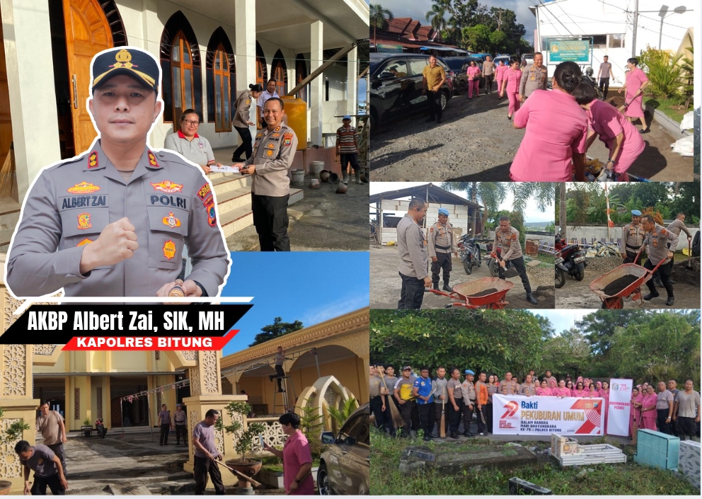 bitungnews.id || BITUNG — Dalam rangka memperingati Hari Ulang Tahun ke-79 Bhayangkara, Kapolres Bitung AKBP Albert Zai, S.I.K., M.H. memimpin langsung kegiatan bakti religi yang dilaksanakan serentak pada Senin (16/6/2025) di 10 rumah ibadah dan satu Tempat Pemakaman Umum (TPU) di wilayah Kota Bitung.