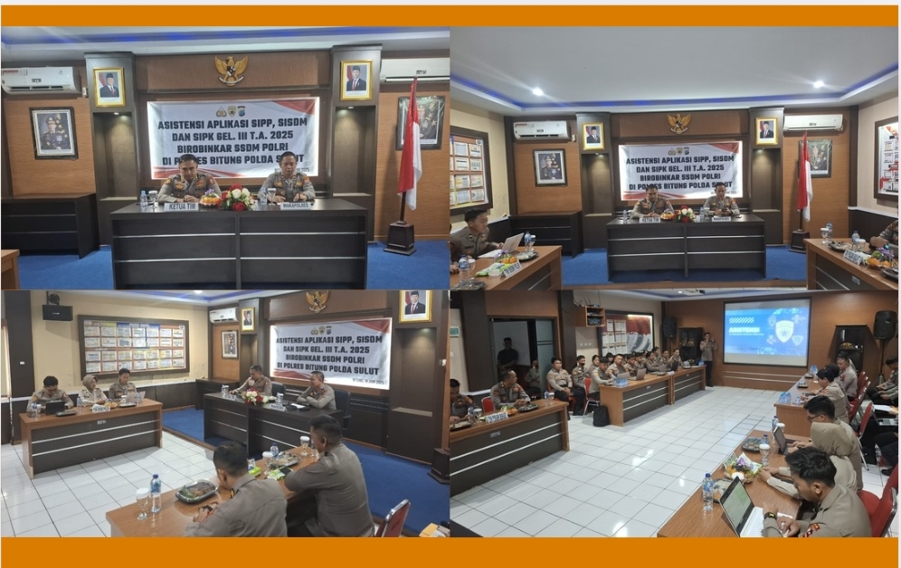 bitungnews.id || BITUNG – Polres Bitung menjadi lokasi pelaksanaan kegiatan asistensi nasional dari Tim Robinkar SSDM Polri terkait pemanfaatan tiga aplikasi strategis: SIPP, SISDM, dan SIPK. Kegiatan yang berlangsung pada Rabu (18/6/2025) ini dipimpin oleh AKBP Rizky Tri Putra Erryka Adi Wijaya, S.I.K., M.H., mewakili SSDM Mabes Polri.