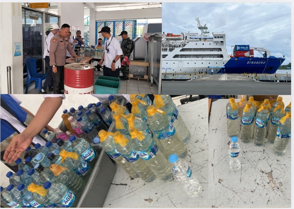 “Barang bukti miras ditemukan saat pemeriksaan X-Ray. Temuan ini merupakan hasil kerja sama PT Pelni bersama PT Pelindo, Polsek KPS Bitung, serta dukungan pengamanan eksternal TNI-Polri dan Yonmarhanlan VIII Bitung. Seluruh barang terlarang tersebut langsung dimusnahkan di lokasi,” ungkap Kepala Cabang PT Pelni Bitung, Juni Samsudin.