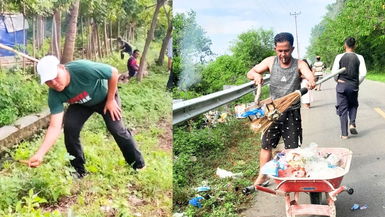 Suasana gotong royong tampak ramai. Warga, aparat desa, dan anggota BPD saling bahu-membahu menata jalan, membersihkan rumput, hingga menyiapkan area yang juga menjadi lokasi pembuangan akhir sampah. Semua dilakukan demi menyukseskan agenda besok.