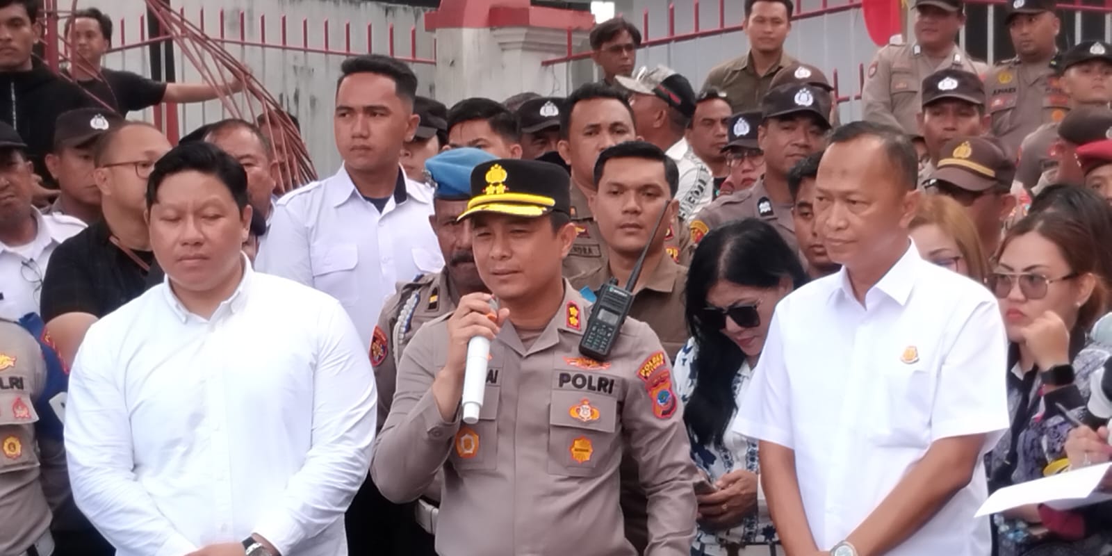Uniknya, kedatangan massa aksi justru disambut secara humanis oleh Kapolres dan jajarannya. Polisi terlihat membagikan kue dan air mineral kepada peserta aksi. Sambutan tersebut diapresiasi para pengunjuk rasa yang menilai aparat berhasil menunjukkan pendekatan persuasif dan penuh keakraban.