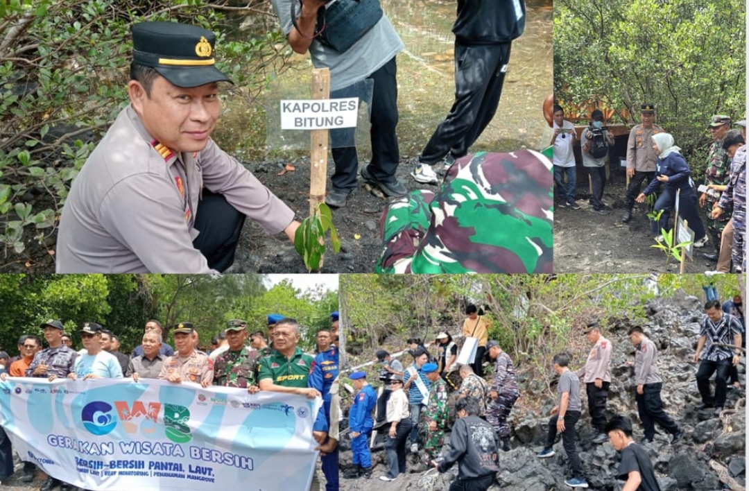 Penanaman pohon mangrove turut menjadi simbol komitmen bersama dalam menjaga keseimbangan ekologi. Selain berperan melindungi pantai dari abrasi, ekosistem mangrove juga memberi manfaat ekonomi bagi masyarakat pesisir serta menjadi habitat penting bagi keanekaragaman hayati laut.