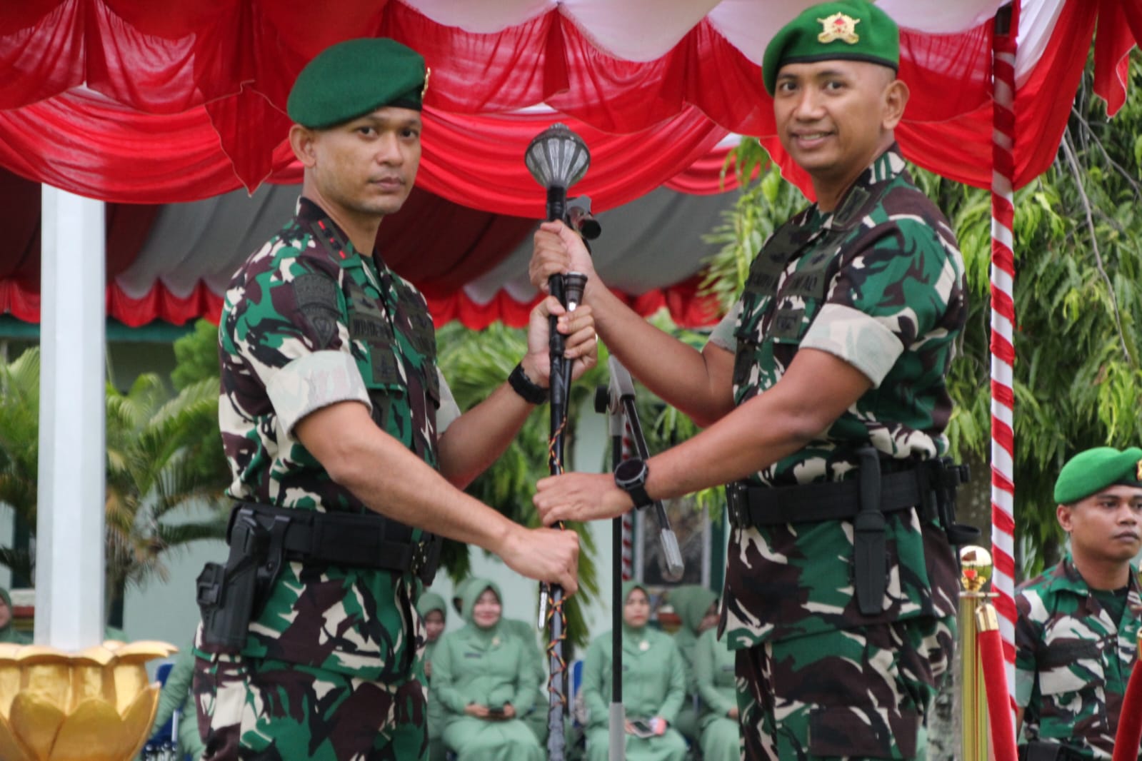 Letkol Inf M. Cahyo Nugroho B., Abituren Akmil 2006, menyerahkan tongkat komando kepada Letkol Inf Widyastomo E. N., Abituren Akmil 2007, sebagai bagian dari mekanisme pembinaan organisasi TNI AD.