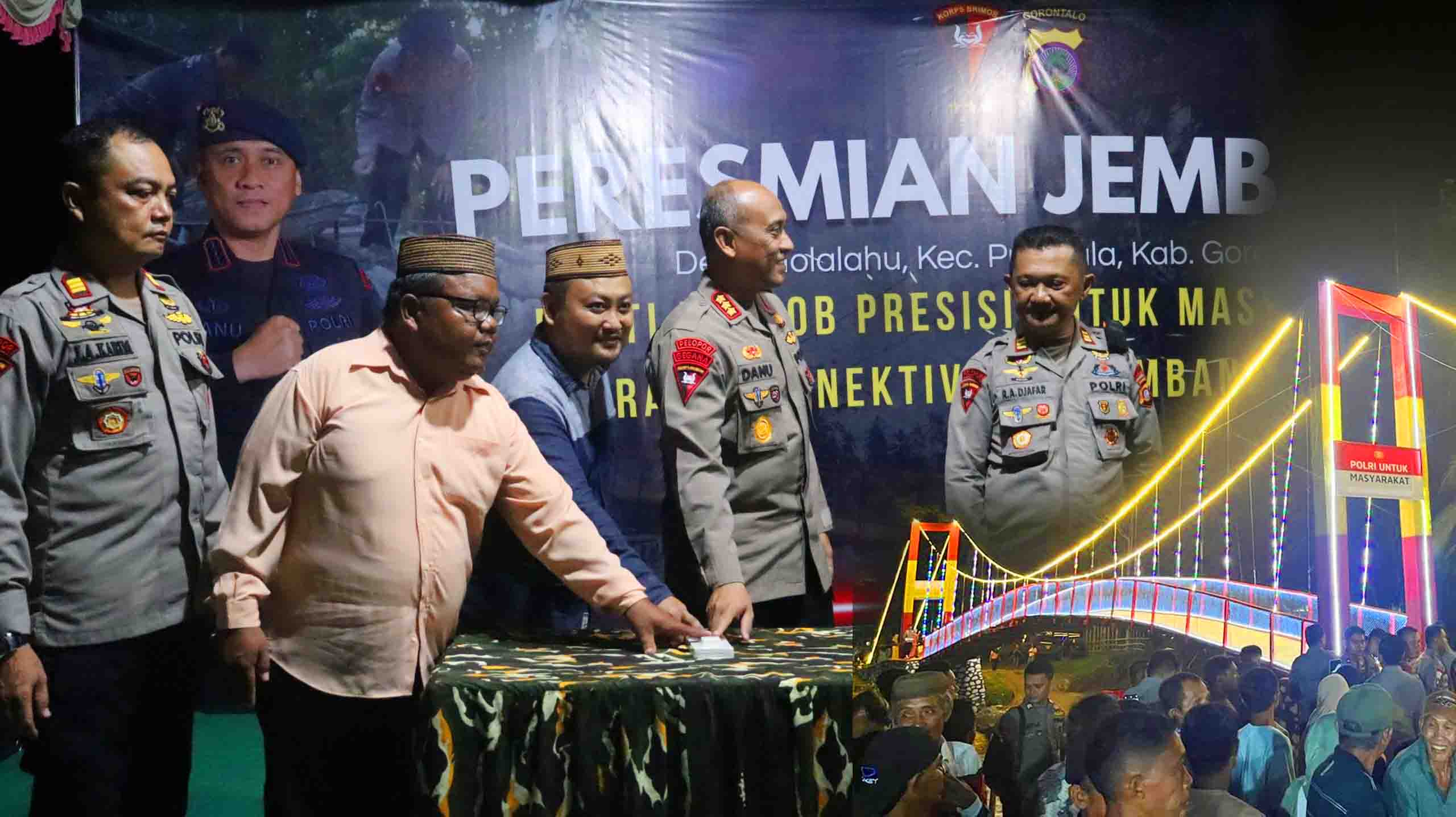 Peresmian yang berlangsung pukul 20.30 Wita itu mengusung tema Bakti Brimob Presisi Untuk Masyarakat Merajut Konektivitas Membangun Negeri. Penekanan sirene oleh Dansat Brimob bersama Camat Pulubala dan Kepala Desa Molalahu menandai selesainya pembangunan jembatan dan pulihnya akses yang sebelumnya terputus.